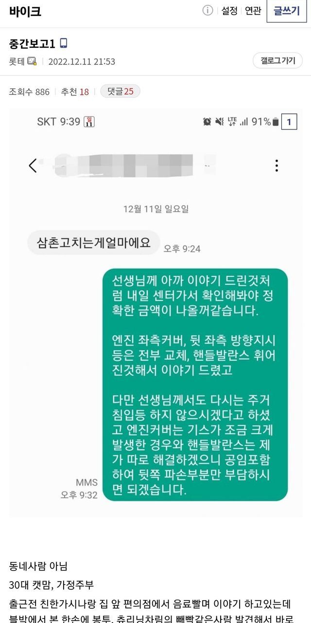 캣맘이 밥주다가 바갤럼 바이크를 부셔버림