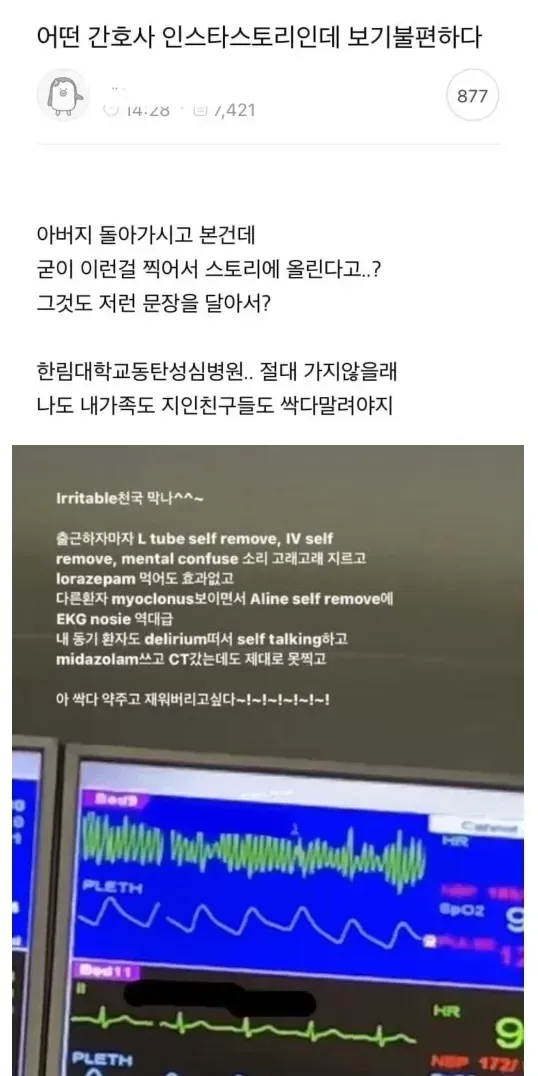 어떤 간호사 인스타스토리인데 보기 불편하다.