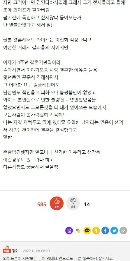 [펌] 와이프가 나랑 결혼한 이유 우연히 들음.