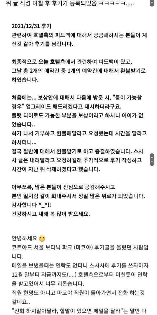 보통 서비스업은 이럴때 완전 환불해주고 티켓까지 주는데