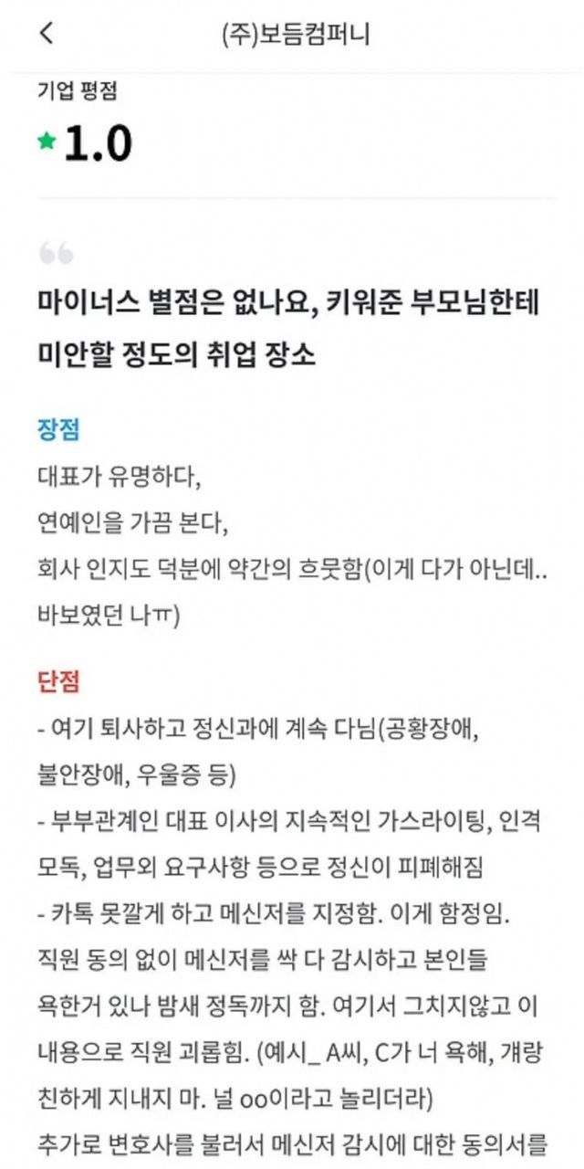 다시보는 강형욱 회사 잡플래닛 평가
