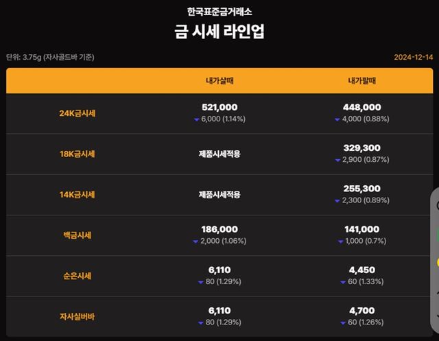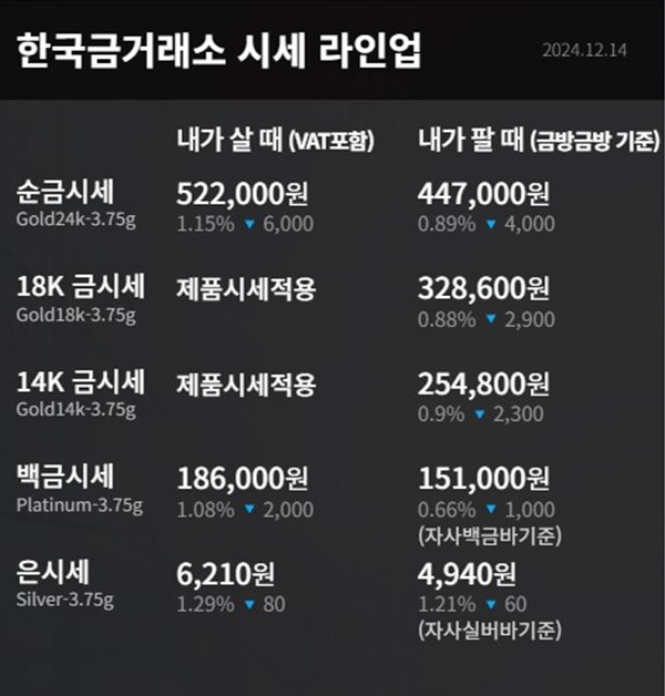 순금(24K) : 매입가 52만 2000원 / 매도가 44만 7000원