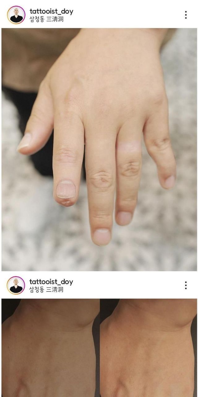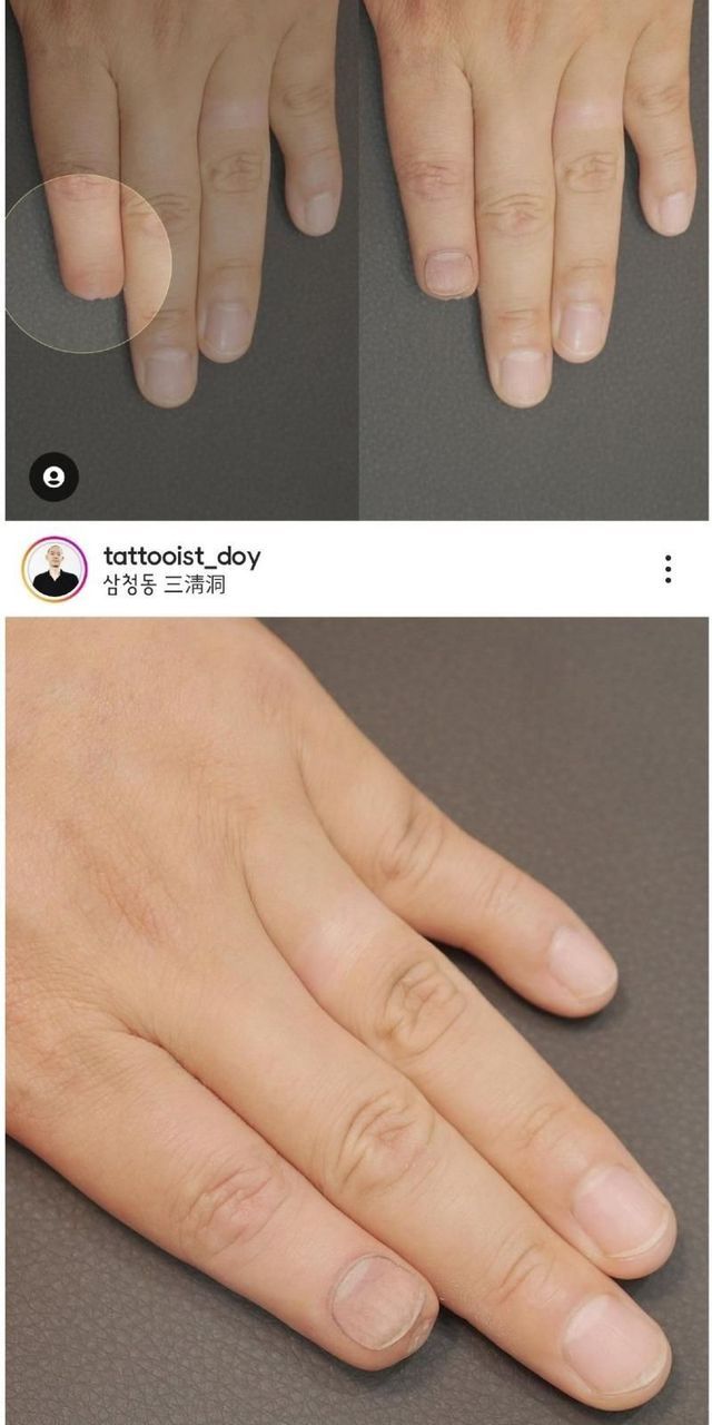 사고로 절단된 손가락에 손톱 모양의 문신을 새김.