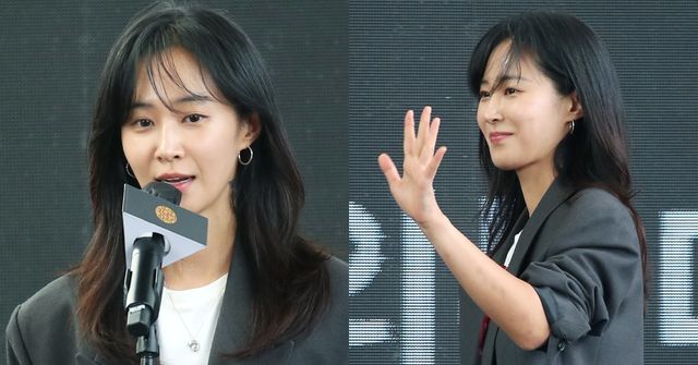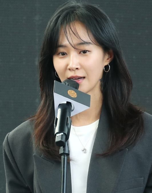 소녀시대 권유리가 지난 10월 부산 해운대구 영화의전당 야외극장에서 열린 영화 ‘침범’ 무대 행사에 참석해 인사말을 하고 있다. / 뉴스1