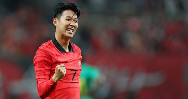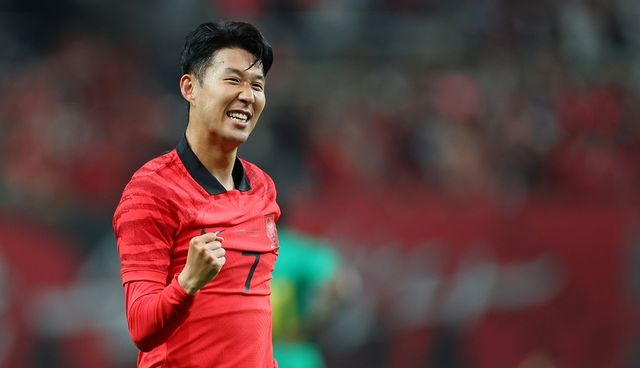 2022년 9월 27일 오후 서울 마포구 서울월드컵경기장에서 열린 한국 대 카메룬 축구 대표팀의 평가전에서 전반 한국 손흥민이 선제 헤더 골을 성공한 뒤 세리머니를 펼치고 있다. / 연합뉴스