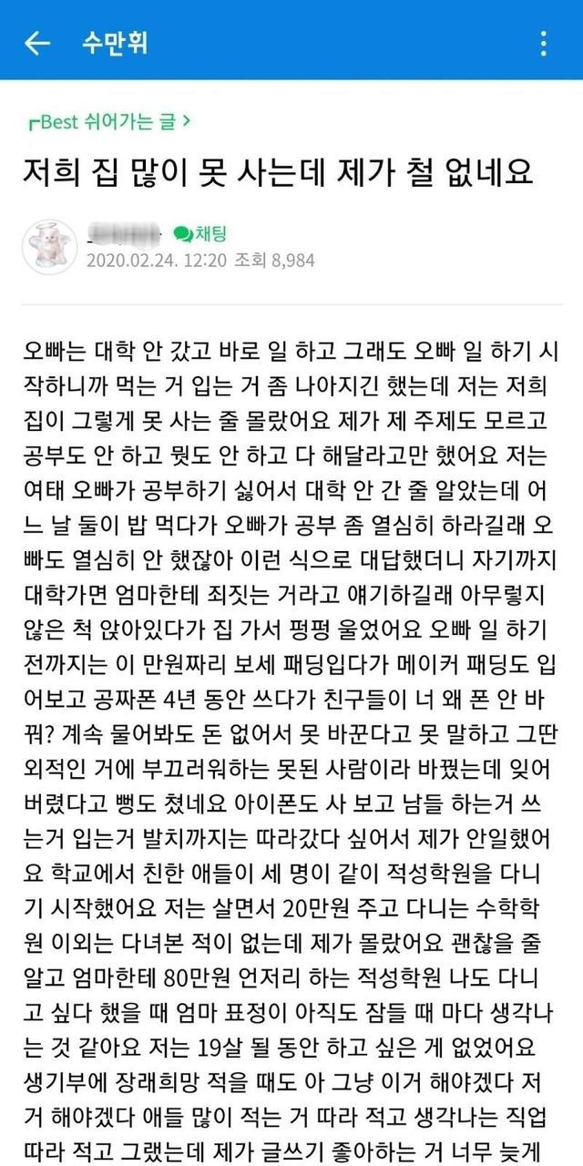 각자 시기는 조금씩 다르고 안그런 사람도 있겠지만 가난은 사람을 빨리 철들게 한다고…
