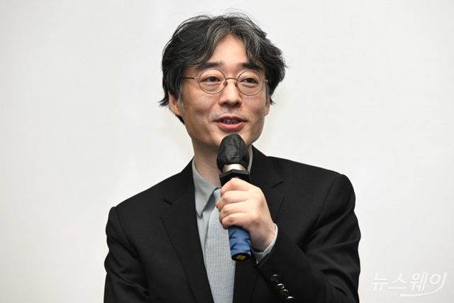 임종윤 전 한미사이언스 사장이 28일 오후 경기 화성시 수원과학대학교SINTEX에서 열린 '한미사이언스 제51기 정기 주주총회'를 마친 후 임시로 마련된 기자실을 찾아 소감을 전하고 있다. 사진=강민석 기자 kms@newsway.co.kr