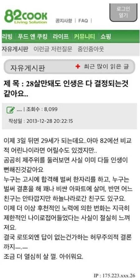 28살만 돼도 인생은 다 결정되는 것 같아요