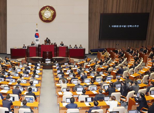 이날 국회 본회의에서 윤 대통령에 대한 탄핵소추안은 재석 의원 300명 중 찬성 204표, 반대 85표, 기권 3표와 무효표 8표로 가결됐다. 탄핵안이 통과됨에 따라 윤 대통령의 직무는 자동으로 정지되며 한덕수 국무총리가 권한 대항을 맡게 된다.