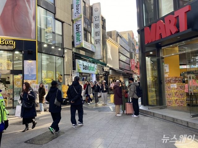 명동거리에서 관광을 즐기고 있는 외국인 관광객들. 사진=김제영 기자