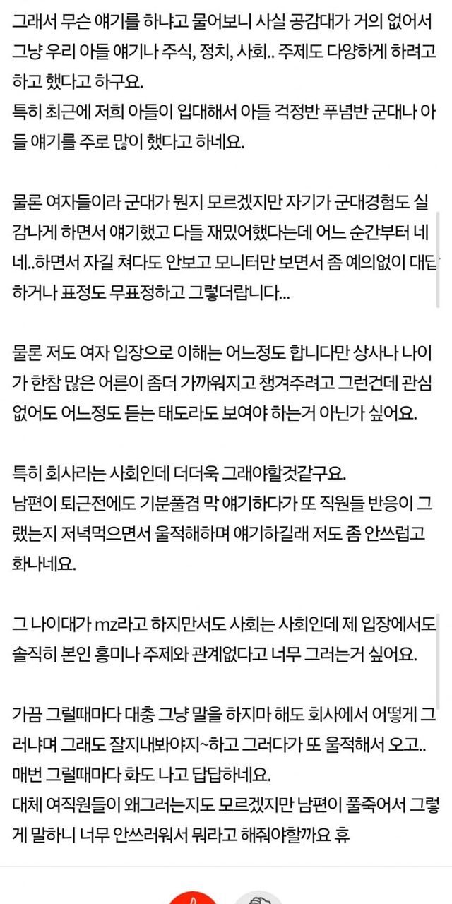 무슨 아들 얘기나 군대 얘기 이런 것 등등..
