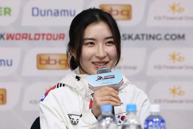 경기 출전 소감 말하는 김길리 (서울=연합뉴스) 황광모 기자 = 2024~25 국제빙상연맹(ISU) 쇼트트랙 월드 투어 서울을 앞두고 11일 오후 서울 양천구 목동 아이스링크에서 열린 대한민국 쇼트트랙 대표팀 미디어 데이에서 김길리 선수가 이번 대회에 나서는 소감을 말하고 있다. 2024.12.11 hkmpooh@yna.co.kr/2024-12-11 15:20:54/