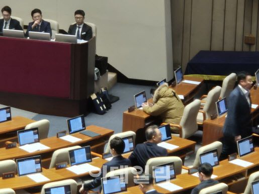 북적한 국회 바깥과 달리 국회 안은 차분했다. 국회 보좌진들 몇몇이 눈에 띄었을 뿐이었다. 여도 야도 서로를 자극하지 않은 채 차분히 본회의를 기다리는 분위기였다.