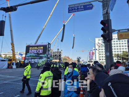 14일 서울 여의도 국회의사당 앞 도로와 여의도공원은 오전 시간부터 탄핵을 찬성하는 시민들로 북적였다. 국회 앞에는 대형 스피커가 달린 무대가 설치됐고 최신 K팝 음악이 나왔다. 분위기는 진지했지만 시민들의 얼굴은 밝았다.