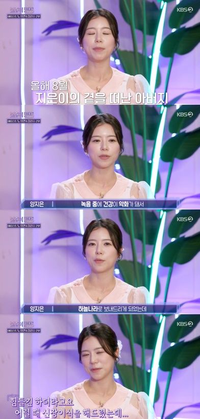 이어 양지은은 "그때 아빠를 살려야겠다는 생각밖에 없었다. 몇주 후 빠른 시일 내에 수술을 하게 됐다"고 덧붙였다.