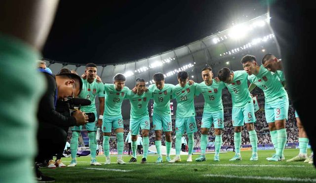 중국 축구대표팀 선수들이 지난 1월 22일(현지시간) 카타르 도하 칼리파 인터내셔널 스타디움에서 열린 2023 아시아축구연맹(AFC) 카타르 아시안컵 조별리그 A조 조별리그 3차전 카타르와의 경기에 앞서 파이팅을 하고 있다. / 뉴스1