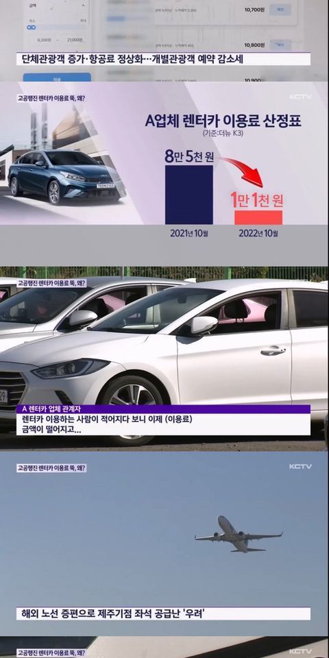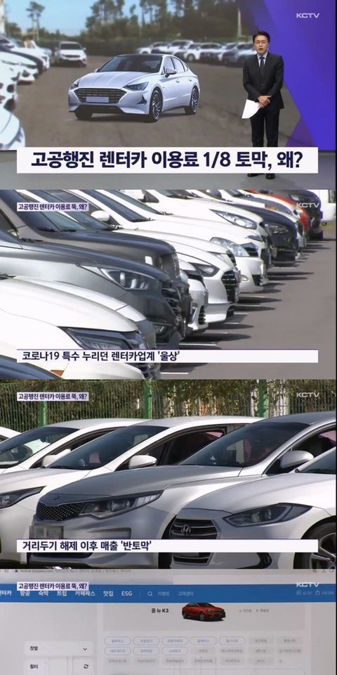 거리두기 해제 이후 단체관광객 급증 (전세버스 이용으로 개별 렌트카 수요 감소) + 해외 노선 증편 = 렌트카 매출 하락