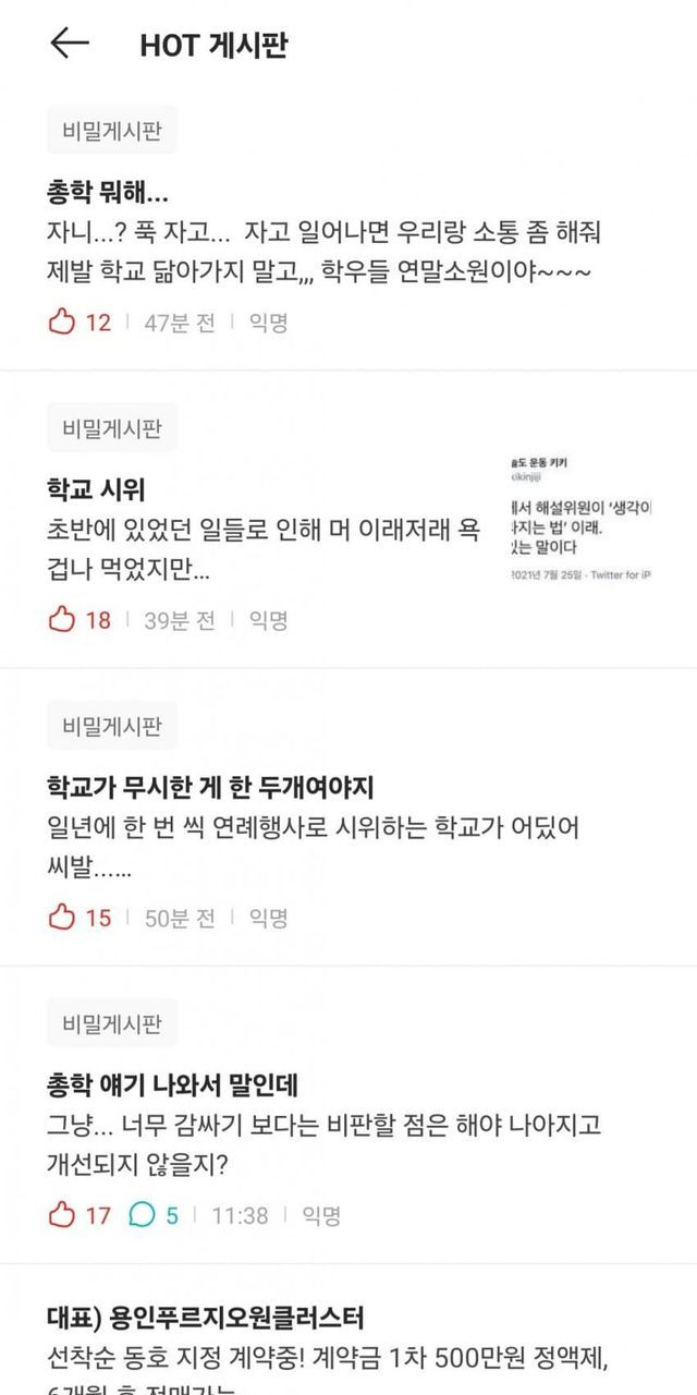 총학 뭐라고 하는 글들이 갑자기 우르르 핫게에 올라옴