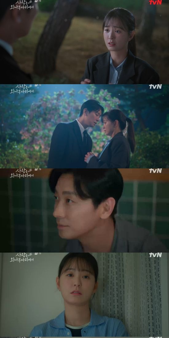 윤지원은 "그런가? 근데 어쩌지. 그렇게 못 하겠어. 단호하게 구는 거 못 하겠다고. 좋아하니까. 나만 있으면 어떤 거든 상관없다는 걔가 좋았어. 진짜 그렇게 웃었거든. 세상 다 가진 것처럼. 열여덟이었던 내가 그런 석지원을 어떻게 안 좋아할 수 있었겠어. 뭔데? 옛날에 좋아했다는 말을 하는 거야 아니면 지금도 그때도 날 버렸고 지금도 끝이 보이는데 나는 다시 석지원을 좋아해. 그렇게 됐어"라며 눈물 흘렸다. 윤지원은 "어차피 다 소용없는 일이다. 봐. 꽃이 다 졌잖아"라며 씁쓸해했다.