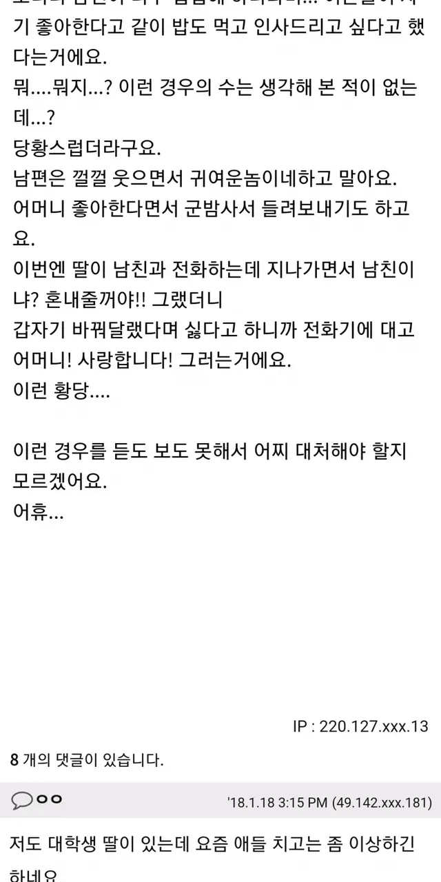 고2 딸의 붙임성 좋은 남친 때문에 당황한 엄마.