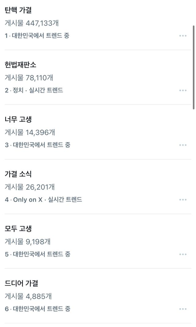 국회 탄핵안 가결 이후 헌재 심판에 관심을 가져야 한다는 이들도 있었다. 한 이용자도 "여의도에 모인 국민들 다같이 다 만세 부르는데, 그냥 울컥함"이라며 "헌재까지 가보자. 윤석열 탄핵!"이라고 했다. 다른 이용자도 "탄핵 가결이지만 지금부터 해야 할 일이 너무나도 많고 중요하다"며 "이제는 헌재가 옳은 판단(을) 내리길 바래야 한다"고 했다.