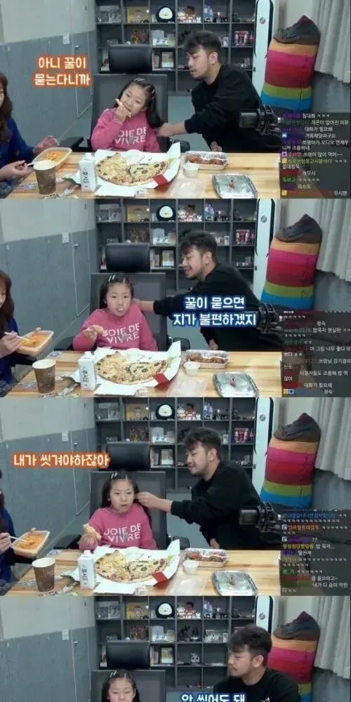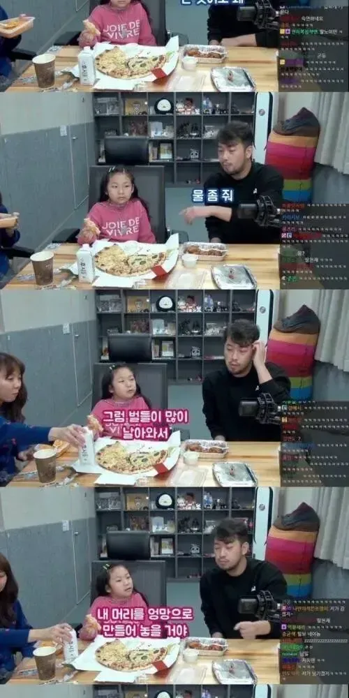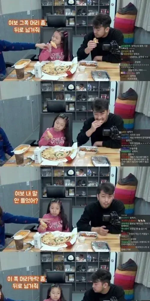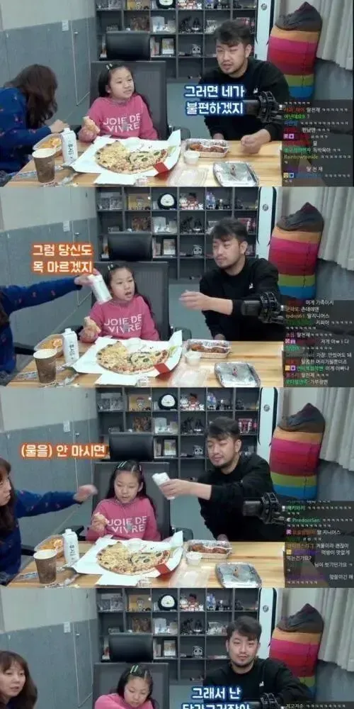 서로 단 한마디도 지지 않으려는 가족의 대화.