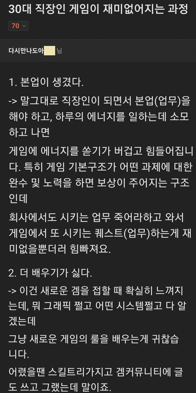 30대 직장인들이 게임이 재미없어지는 과정