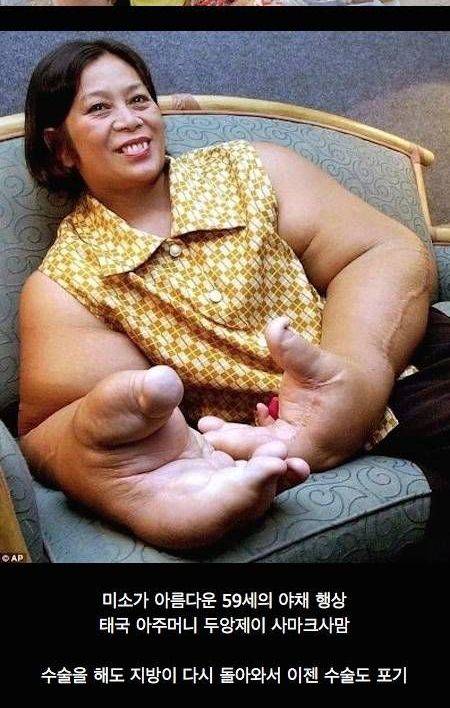 팔이 커지는 병을 앓는 태국 아주머니,,