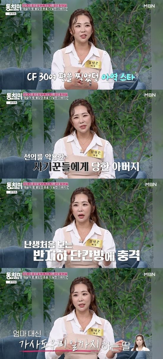 당시 중학생이었다는 김성은은 "멘붕이 왔지만 현실이구나 싶었다. 엄마가 가사도우미 일 나가시면 쉬라고 하고 제가 대신 나갈 때도 있었다. 고등학교 가서는 빙수집, 고깃집, 카페 알바도 했다. 기질적으로 생활력이 강한 건지, 집이 망한 걸 봐서 강해진 건진 모르겠다"고 했다.