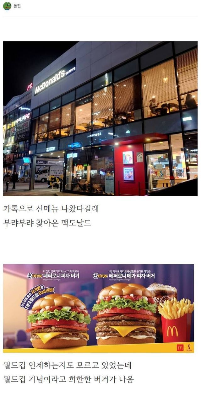 맥도널드 월드컵 페퍼로니 피자 버거.