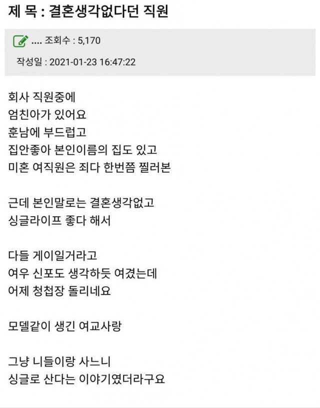 19살 연하 여직원을 좋아하고 있습니다