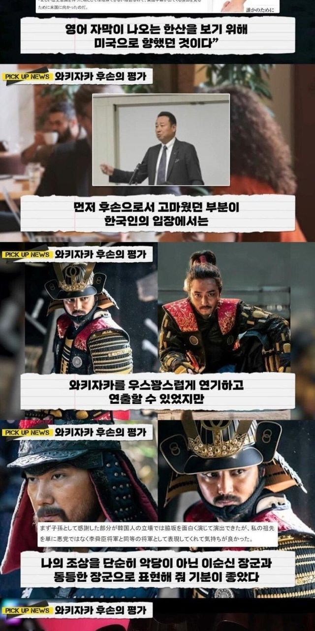 영화 한산을 본 와카자카 후손의 평가.