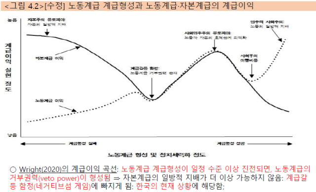 그는 "스웨덴도 그런 경험을 했고, 스웨덴과 같은 스칸디나비아 모델 국가들을 맥락적으로 벤치마킹을 하자는 건데 두 가지 하위 전략으로 구성해야 된다. 하나는 주체형성 전략이고, 다른 하나는 제도개혁 전략이다. 제도개혁의 내용도 계급형성 조건하고 소득 재분배를 통해 불평등을 완화하면 그 수혜자가 생긴다. 이 사람들이 평등한 사회로 나아가는데 지지 기반이 되는데, 그 역시 주체는 노동계급이다."라고 강조했다.
