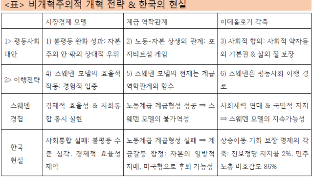 평등사회의 대안인 스웨덴식 사회민주주의로 나아가는 비개혁주의적 개혁전략