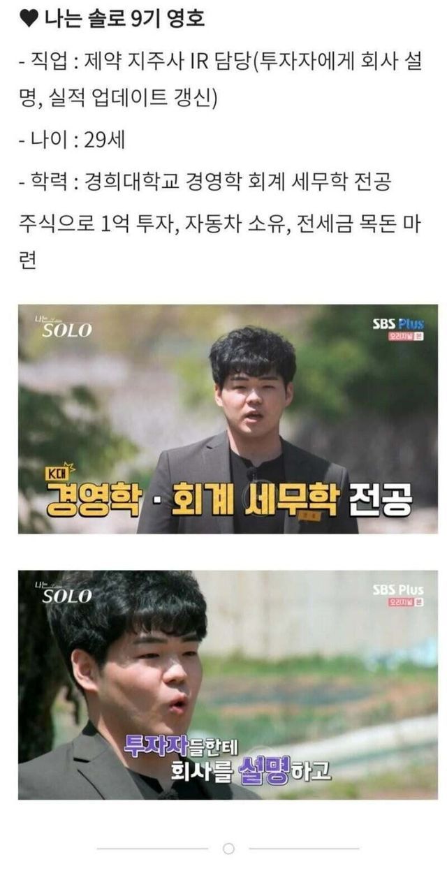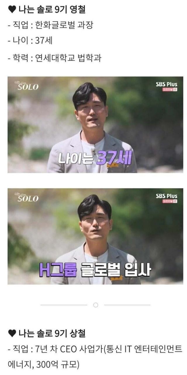 ‘나는 솔로’ 9기 남녀 스펙.