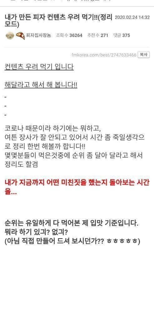 약고전) 특이한 피자 시도한 사장님.