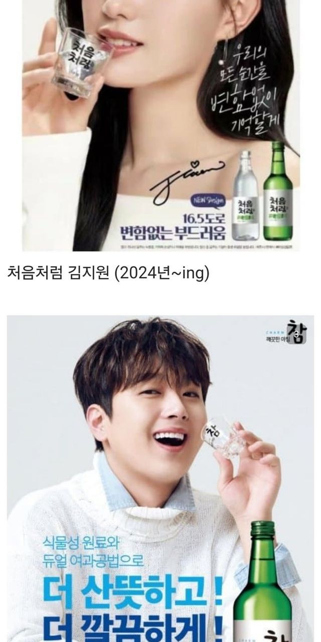 현시점 소주 모델은 아이유 진로 참이슬, 김지원 처음처럼