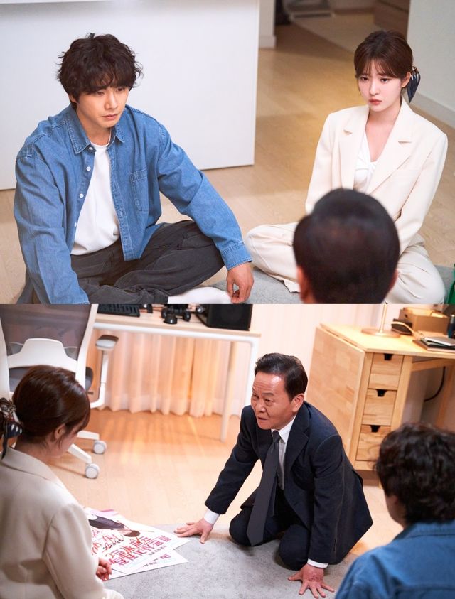 무슨 일인지 임 시장은 봉철희와 정하나 앞에서 무릎까지 꿇고 읍소하고 있다. 위트와 카리스마를 오가며 언제나 당당했던 임 시장이 그간의 모습과는 완전히 대비되는 모습을 하고 있어 시선을 끈다. 뿐만 아니라 이어진 사진 속 봉철희와 정하나는 임 시장을 향한 날카로운 눈빛을 거둔 채 이내 눈물이 맺힌 얼굴을 하고 있어 호기심을 더한다.