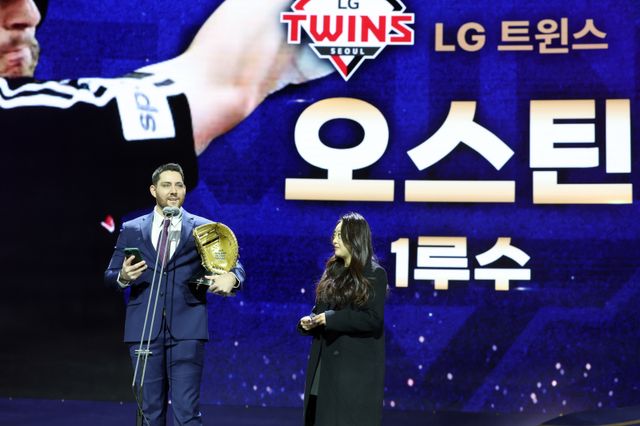 오스틴은 지난 13일 서울 강남구 삼성동 코엑스 오디토리움에서 열린 2024 KBO리그 골든글러브 시상식에서 1루수 부문 수상자로 무대에 섰다. 총 유효표 288표 중 193표(득표율 67.0%)를 얻어 홈런왕 맷 데이비슨(NC 다이노스·28.8%)를 가볍게 제쳤다.