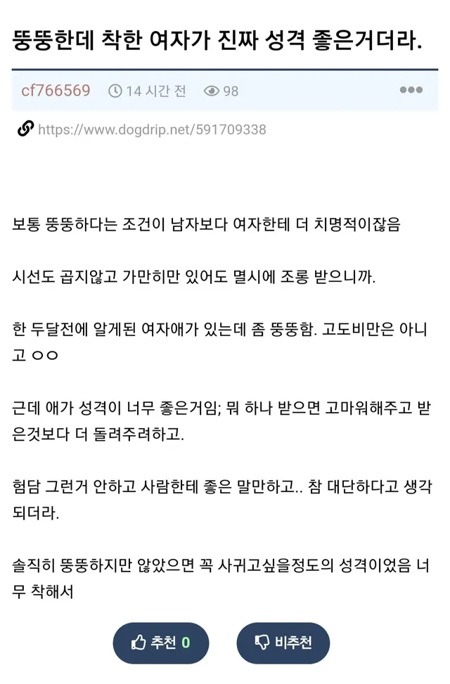 ㄹㅇ 여자가 뚱뚱한데 성격 좋기 쉽지 않을것 같음
