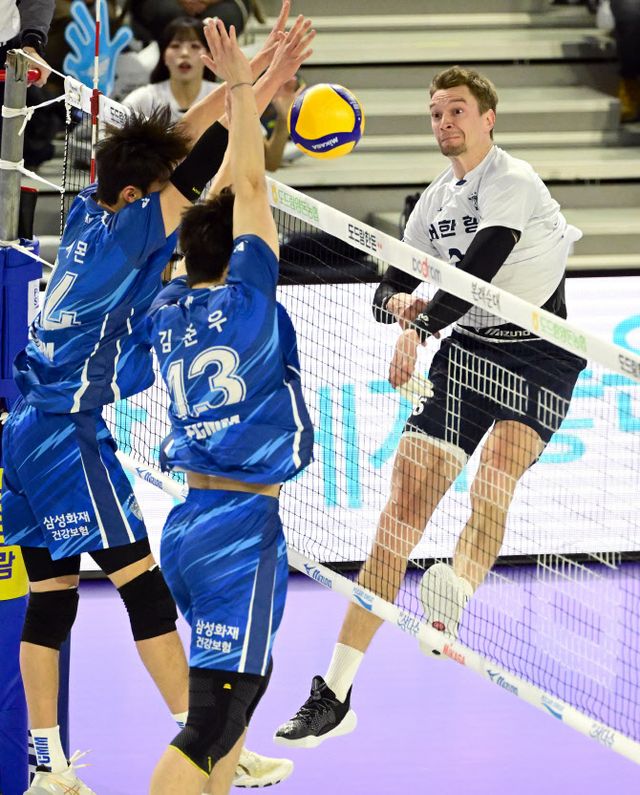대한항공은 15일 인천 계양체육관에서 열린 도드람 2024~25 V리그 남자부 원정경기에서 삼성화재를 세트스코어 3-1(25-15 20-25 25-21 37-35)로 눌렀다.