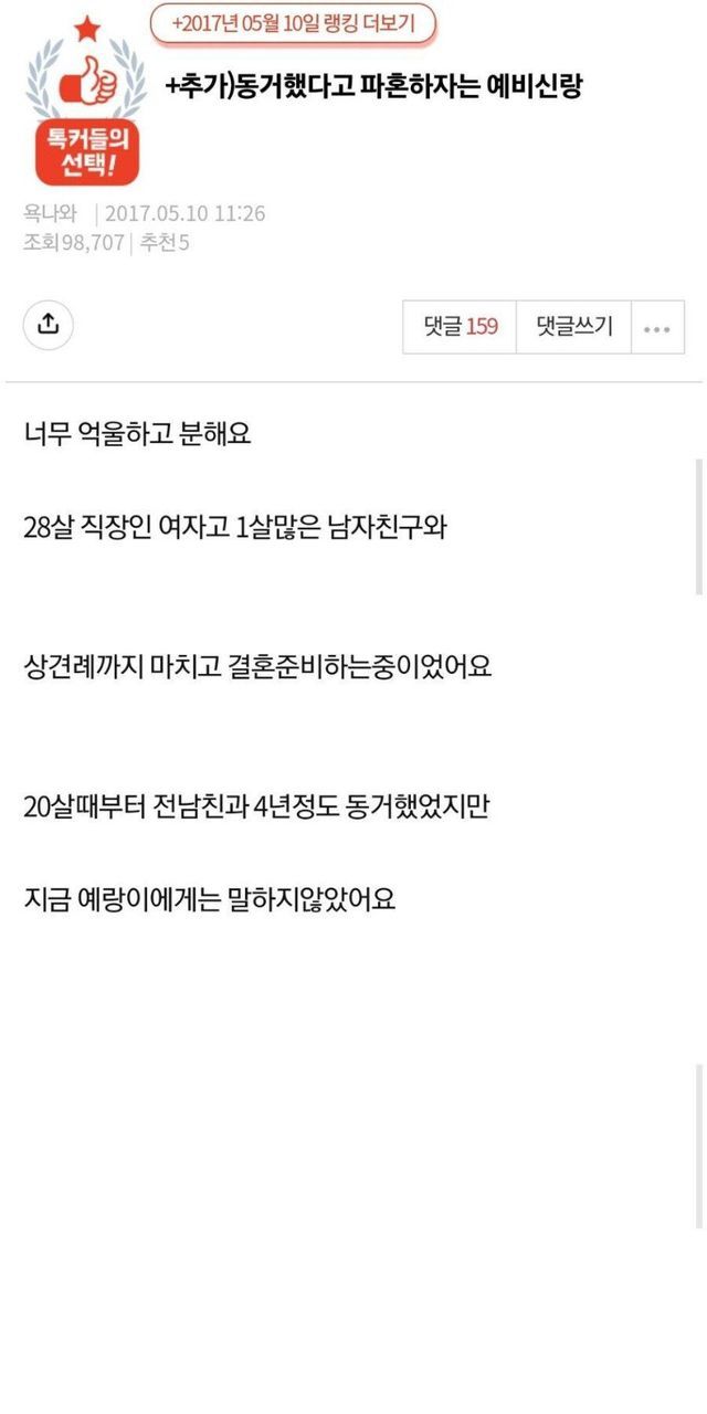 동거했다고 파혼당함.