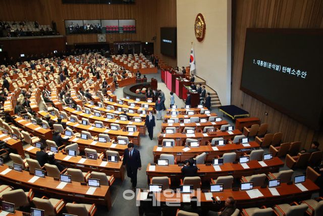 지난 14일 국회 본회의에서 윤 대통령에 대한 탄핵소추안이 가결됐다. 총원 300명에 가(찬성) 204명, 부(반대) 85표, 기권 3표, 무효 8표였다.