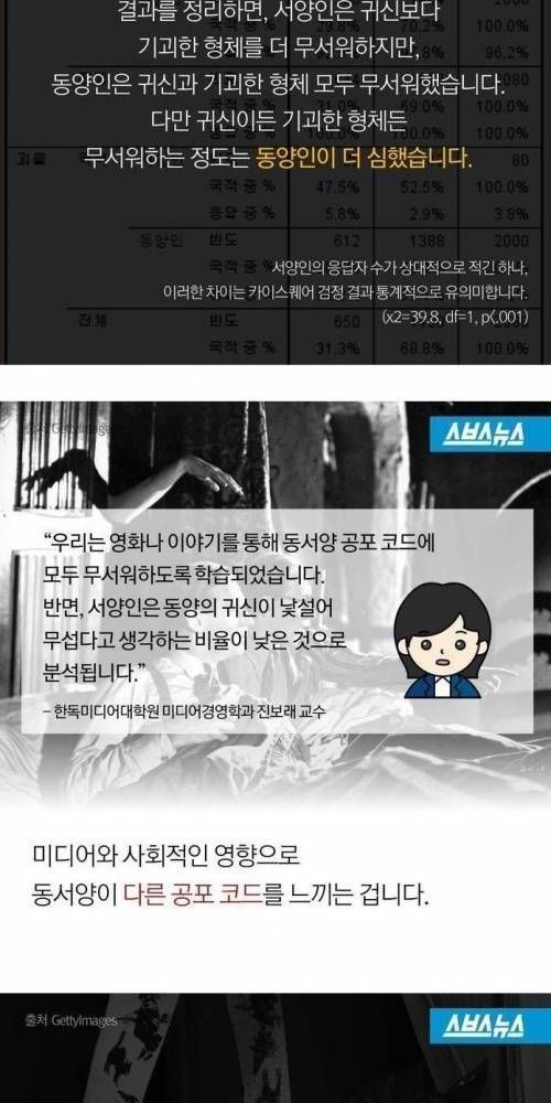 동양인과 서양인 공포 코드 차이.