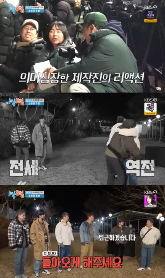 소원공 뽑기 결과를 확인한 제작진은 의미심장한 얼굴을 보였는데 소원권 주인공은 조세호, 딘딘으로 밝혀졌다.