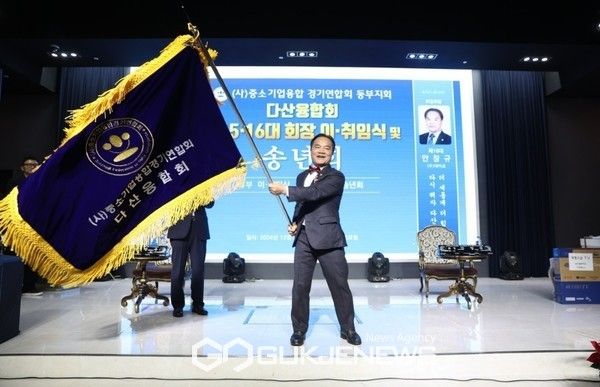 (남양주=국제뉴스) 김영규 기자 = 체어로 안창규 회장이 지난 2일 경기 남양주시 브릭스타워에서 열린 (사)중소기업융합 경기연합회 동부지회 회장 이·취임식에서 16대 회장으로 취임했다.