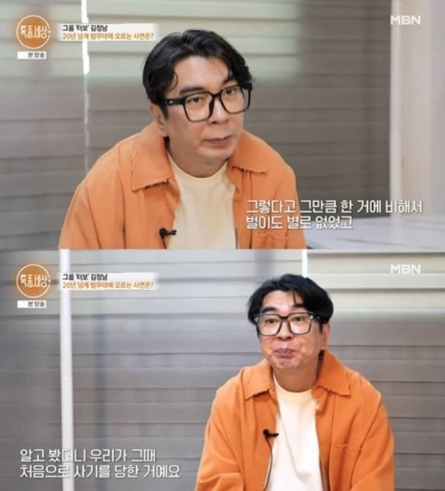 김정남은 "김종국과 어떤 프로그램 사회를 보고 있었는데, 검찰 수사관이 찾아왔다"라며 "알고 봤더니 우리가 그때 처음으로 사기를 당한 거였다. 나는 학을 뗐다. 그만큼 한 것에 비해 벌이도 별로 없었다"고 토로했습니다.