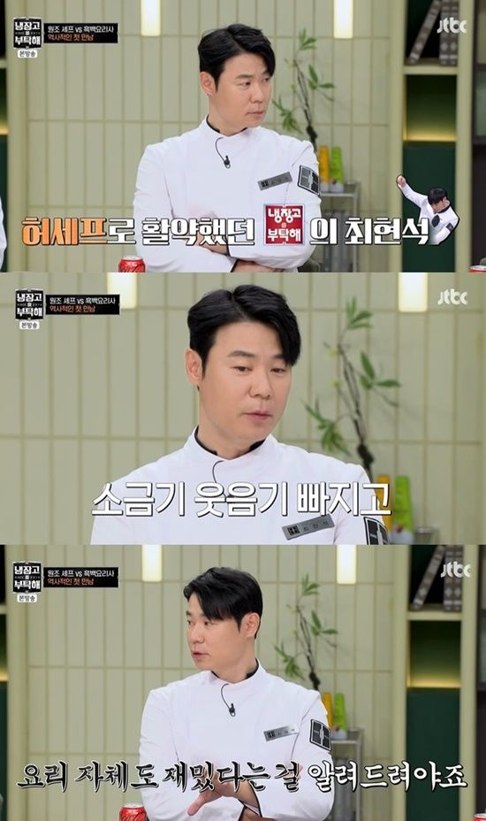 최현석은 진지한 표정으로 "요리 자체도 재밌다는 것을 알려드려야 한다. 왜 그걸 희화화 시키려고만 하냐"고 지적했다.