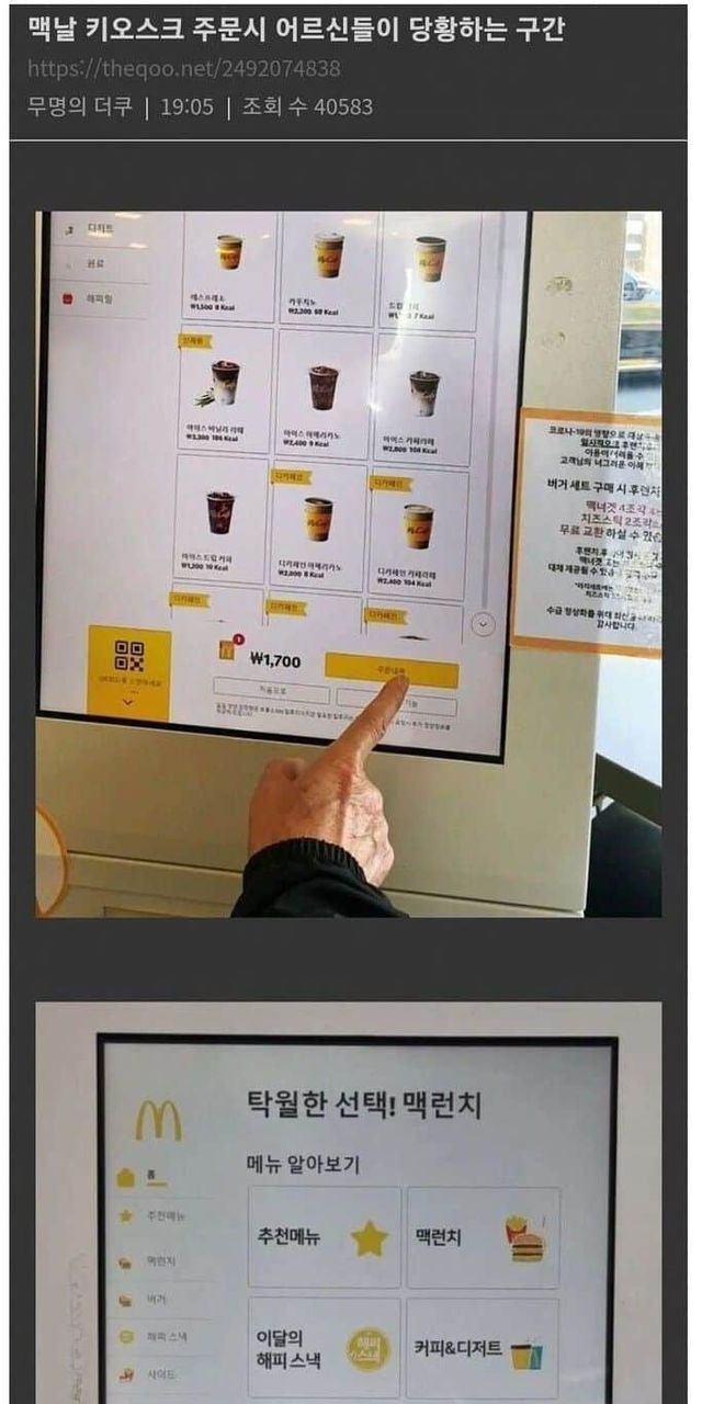 맥도날드 키오스크 주문시 어르신들 당황 구간.
