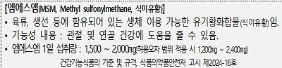◆엠에스엠 제품, 관절건강 기능성분 1일 섭취량 기준 충족